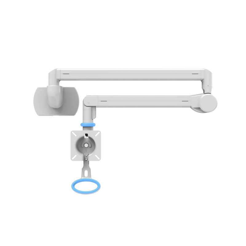 ? 铝合金材质支架,内置机械弹簧,符合VESA标装安装孔位,可灵活调节设备的使用高度与角度。