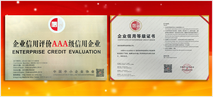 由国家商务部和国务院国资委授权的国家一级行业协会(中国中小企业协会),对企业开展的企业信用等级评价活动中,深圳好博体育科技有限公司被评为信用等级最高的“AAA”级企业信用单位。