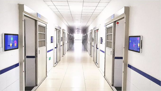 ㈡、智能监仓内应用场景图(可实现一键报警、可视对讲、视频教学、人脸自助点名、信息展示、信息查询、预约申请、心情记录等多项智能应用):