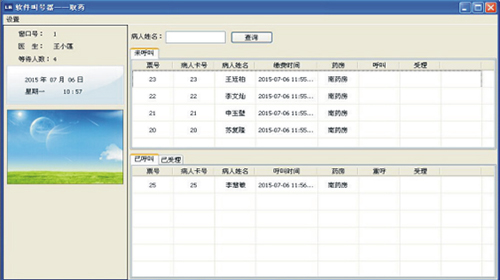 排队叫号:可自动获取HIS数据库中已缴费的患者名单信息列表点击叫号。