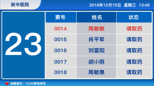• 5. 可语音播报取药患者的姓名、相应的取药窗口号