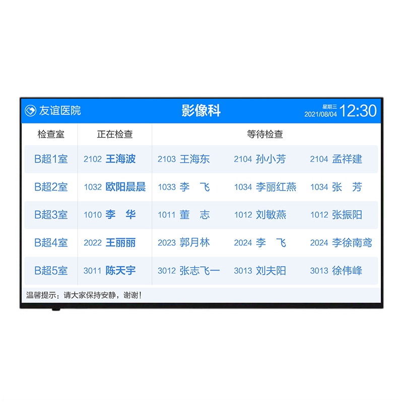 医技排队叫号模块 — 等候区叫号显示屏 —