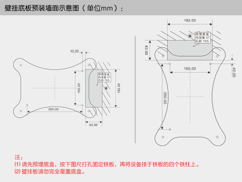 壁挂底板预装墙面示意图。
